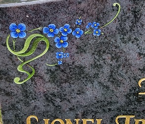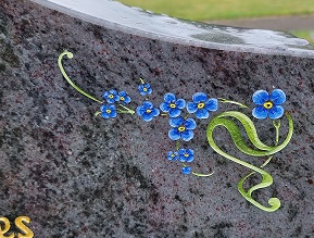 Work Carried out: All Polished Lavender Blue Granite Memorial with wonderful hand painted Robin and floral designs