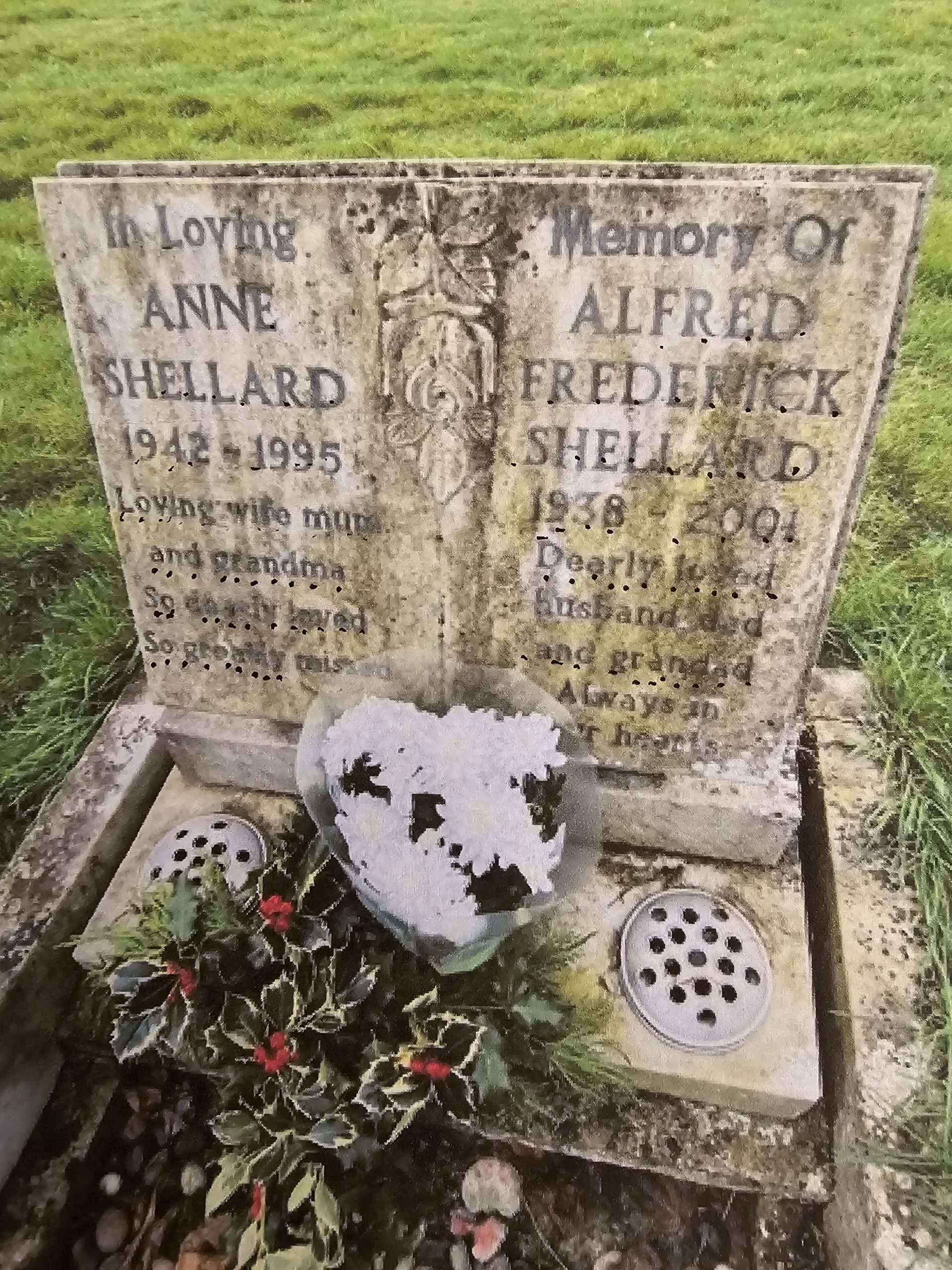 Work carried out: Existing marble book professionally machine cleaned and all lettering recut and releaded to look its very best, old kerbset removed and a new layer of top soil placed on the grave for grass seeding.